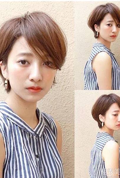 優雅空氣的女生短頭髮,和剪成的斜劉海一部分相配了,